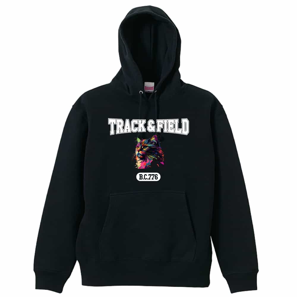 レトロなレインボー猫とTRACK&FIELDロゴ 陸上競技パーカー プルオーバーパーカー 裏パイル 練習着 AW-SPT1239-PP-PIL