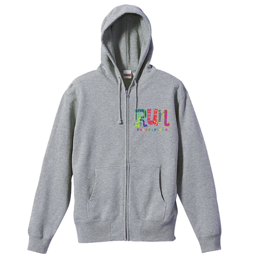 手描きパッチワーク風 RUN 陸上競技パーカー ジップパーカー 裏パイル 練習着 AW-TAF0707-ZP-PIL